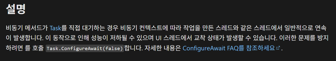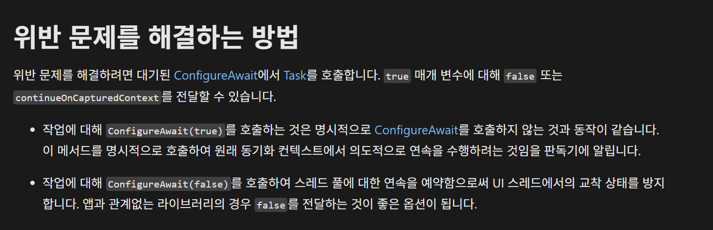 https://learn.microsoft.com/ko-kr/dotnet/api/system.threading.tasks.task.configureawait?view=net-9.0