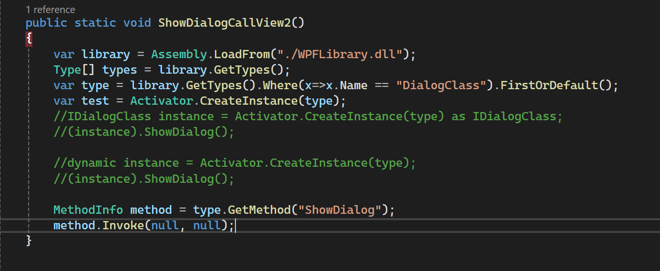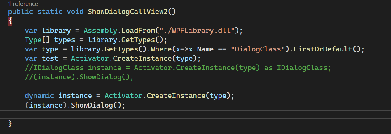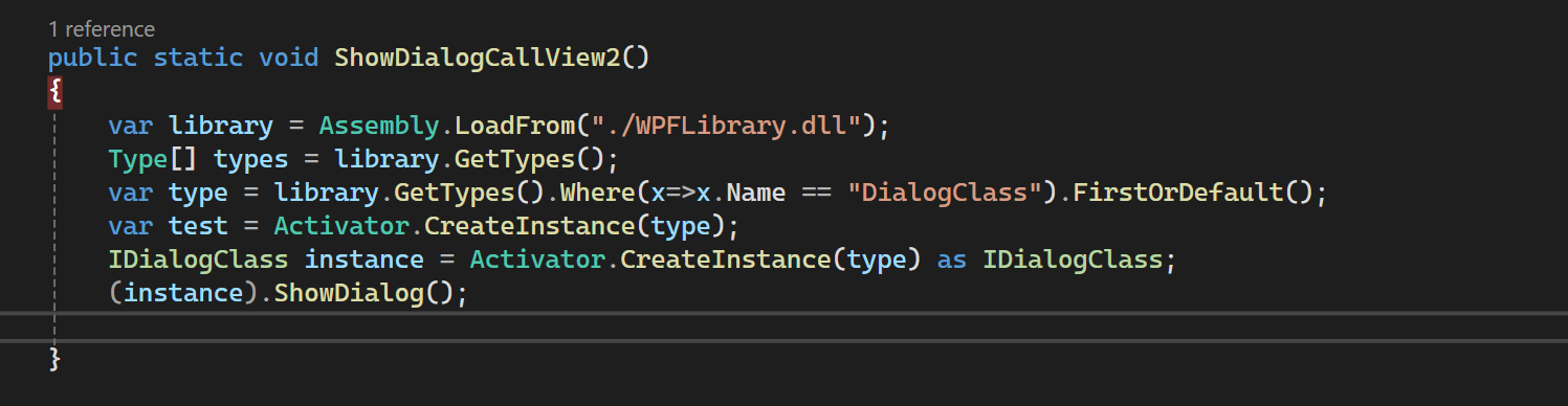 var library = Assembly.LoadFrom("./WPFLibrary.dll");어셈블리 의 타입들