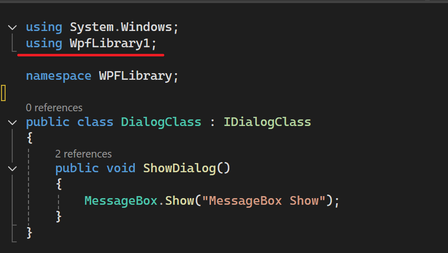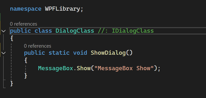 .dll 프로젝트에서 IDialogClass 를 상속받아 Class를 구현하고