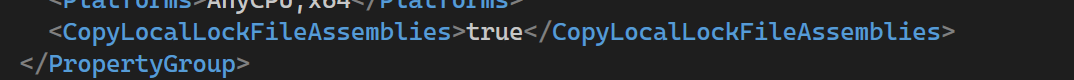 <CopyLocalLockFileAssemblies>true</CopyLocalLockFileAssemblies> + Costura.fody 로 묶으면 가능.