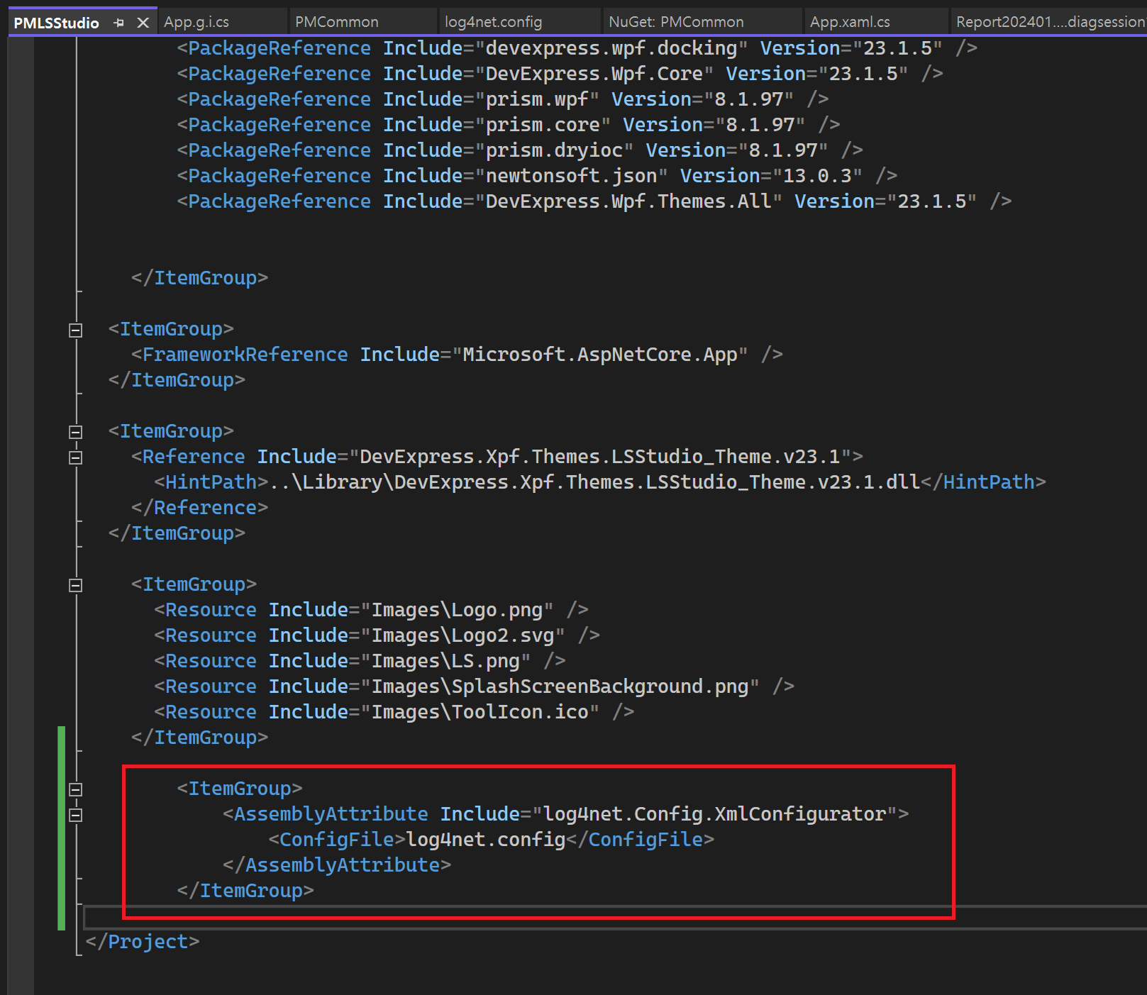 <ItemGroup> <AssemblyAttribute Include="log4net.Config.XmlConfigurator"> <ConfigFile>log4net.config</ConfigFile> </AssemblyAttribute> </ItemGroup># 모듈러 프로젝트인 경우