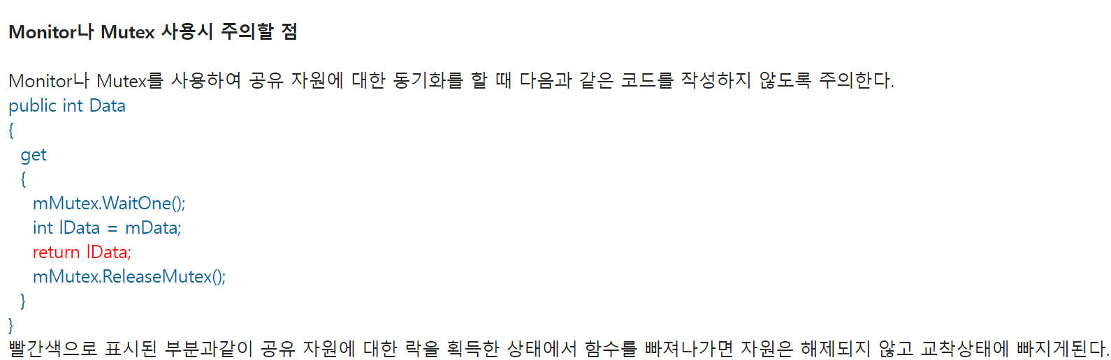 ReleaseMutex 호출하여 뮤텍스의 소유권을 해제