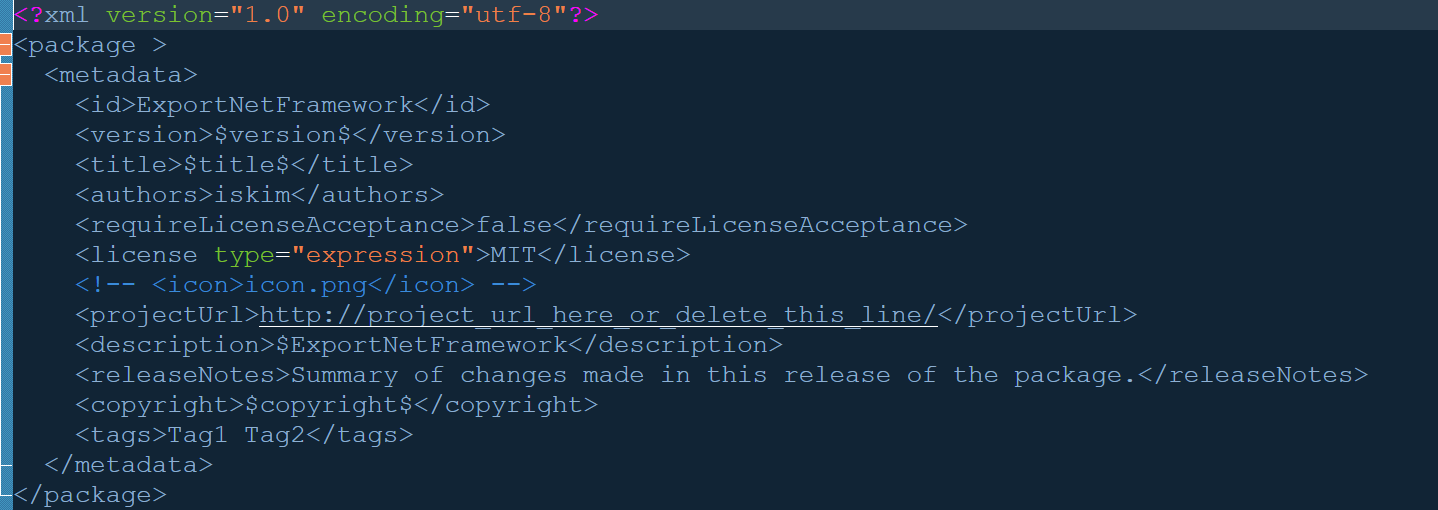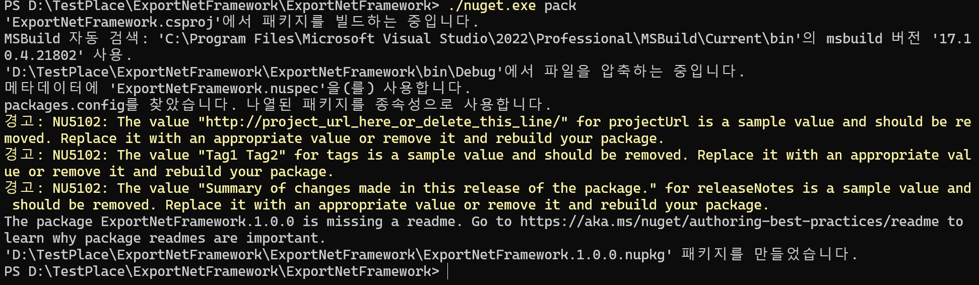 required 에러는 .nuspec 에 value값 채워줘야 함.