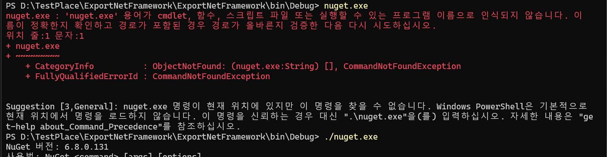 차단 해제 에러는 브라우저상에서 nuget.exe 받아서 쓰면 나옴.