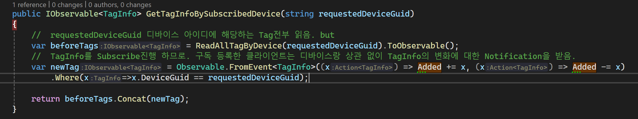 Observable sequence that contains data representations of invocations of the underlying .NET event.TagInfo를 이벤트 타입(전달 인자)으로하는 이벤트를 등록하여