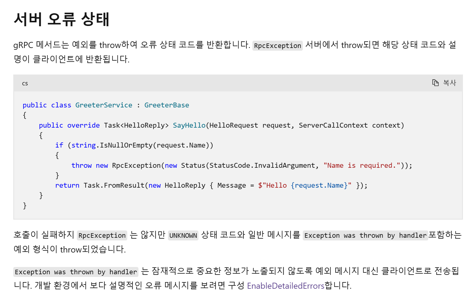 https://learn.microsoft.com/ko-kr/aspnet/core/grpc/error-handling?view=aspnetcore-9.0