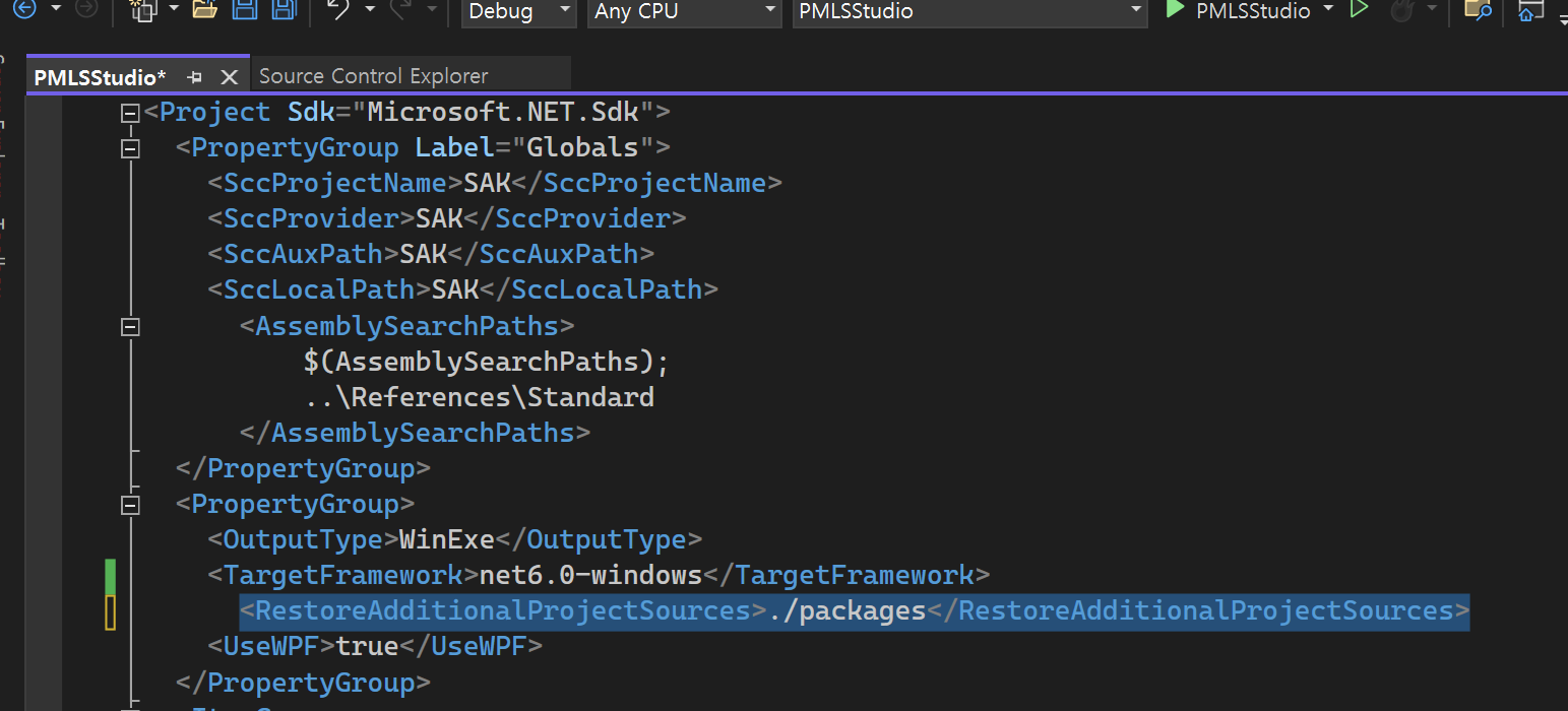 <PropertyGroup> <TargetFramework>net6.0</TargetFramework> <Version>0.1.2</Version> <RestoreAdditionalProjectSources>./_SupportPackages</RestoreAdditionalProjectSources> </PropertyGroup>