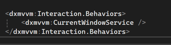 <dxmvvm:Interaction.Behaviors> 아님 주의xmlns:dxmvvm="clr-namespace:DevExpress.Mvvm.UI.ModuleInjection;assembly=DevExpress.Mvvm.UI"