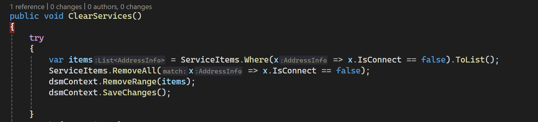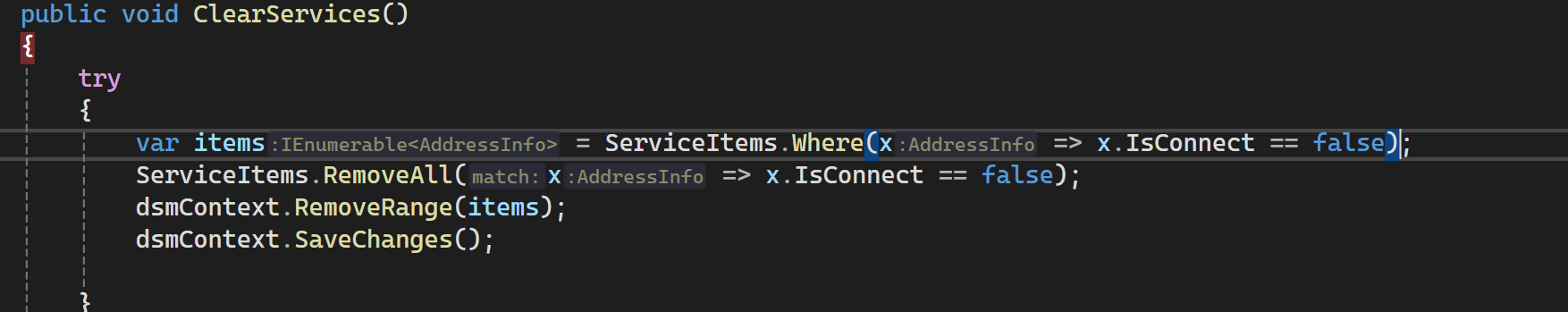 ServiceItems.RemoveAll(x => x.IsConnect == false); 실행 후