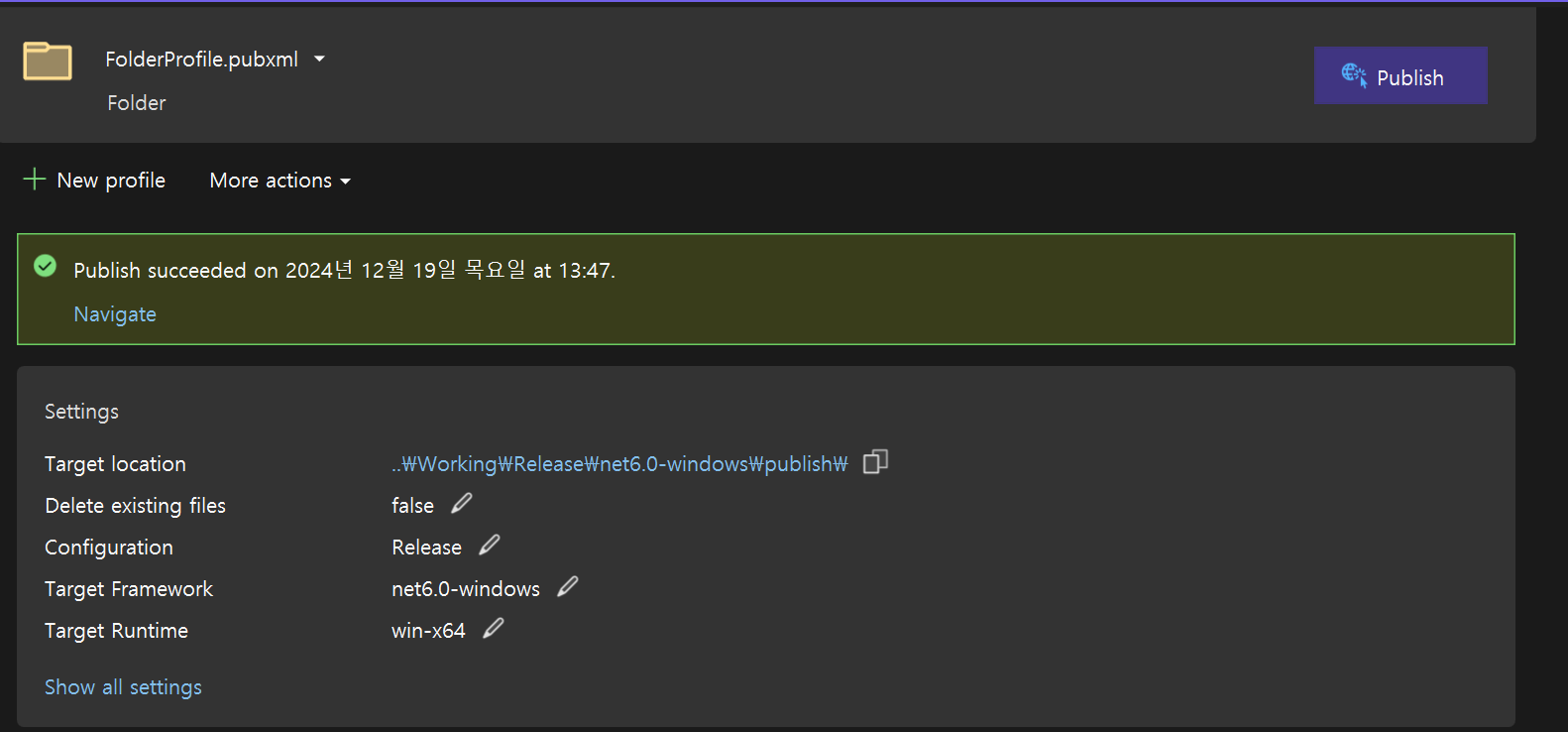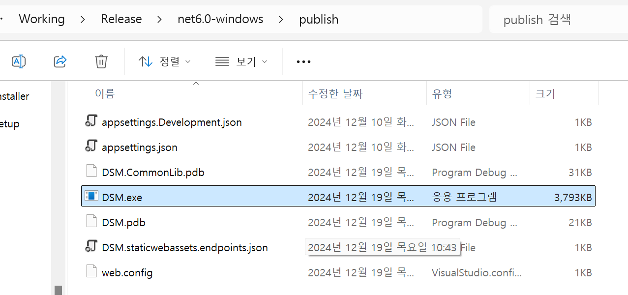 Publish시 .exe 파일 하나로 떨굼
