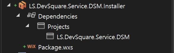 <?xml version="1.0" encoding="UTF-8"?> <!-- Define the variables in "$(var.*) expressions" --> <?define Name = "LSISDSM" ?> <?define Manufacturer = "LSIS" ?> <?define Version = "1.0.0.0" ?> <?define UpgradeCode = "74a228be-c133-45a8-a958-47767b258f9c" ?> <Wix xmlns="http://wixtoolset.org/schemas/v4/wxs" xmlns:util="http://wixtoolset.org/schemas/v4/wxs/util"> <Package Name="$(Name)" Manufacturer="$(Manufacturer)" Version="$(Version)" UpgradeCode="$(var.UpgradeCode)" Compressed="true"> <!--displayed icon in program or feature. 프로그램 및 기능에 표시되는 아이콘--> <Icon Id="LSIS.ico" SourceFile="$(SolutionDir)/LSIS.ico"/> <Property Id="ARPPRODUCTICON" Value="LSIS.ico" /> <!-- Allow upgrades and prevent downgrades --> <MajorUpgrade DowngradeErrorMessage="A later version of [ProductName] is already installed. Setup will now exit." /> <!--.cab file is embedded in the MSI--> <MediaTemplate EmbedCab="yes" /> <!--C:\Program Files\LSIS ~ --> <StandardDirectory Id="ProgramFiles64Folder"> <!-- Create a folder inside program files --> <Directory Id="ROOTDIRECTORY" Name="$(var.Manufacturer)"> <!-- Create a folder within the parent folder given the name --> <Directory Id="INSTALLFOLDER" Name="$(Name)" /> </Directory> </StandardDirectory> <!-- The files inside this DirectoryRef are linked to the App.WindowsService directory via INSTALLFOLDER --> <DirectoryRef Id="INSTALLFOLDER"> <!-- Create a single component which is the App.WindowsService.exe file --> <Component Id="ServiceExecutable" Bitness="always64"> <!-- Copies the App.WindowsService.exe file using the project reference preprocessor variables --> <File Id="DSM.exe" Source="$(var.LS.DevSquare.Service.DSM.TargetDir)\net6.0-windows\publish\DSM.exe" KeyPath="true" /> <!-- Remove all files from the INSTALLFOLDER on uninstall --> <RemoveFile Id="ALLFILES" Name="*.*" On="both" /> <!-- Tell WiX to install the Service --> <ServiceInstall Id="ServiceInstaller" Type="ownProcess" Name="LSISDSM" DisplayName="LSIS DSM Service" Description="A Service that archive related DevSquare Service ex)LSISTagService." Start="auto" ErrorControl="normal" /> <!-- Tell WiX to start the Service --> <ServiceControl Id="StartService" Start="install" Stop="both" Remove="uninstall" Name="LSISDSM" Wait="true" /> <ServiceConfigFailureActions ServiceName="LSISDSM" Command="restart" OnInstall="true" RebootMessage="Restarting the service" ResetPeriod="10"/> </Component> </DirectoryRef> <!-- Tell WiX to install the files --> <Feature Id="DSMService" Title="LS.DevSquare.Service.DSM Setup" Level="1"> <ComponentRef Id="ServiceExecutable" /> </Feature> </Package> </Wix>Build (Wix Porject)