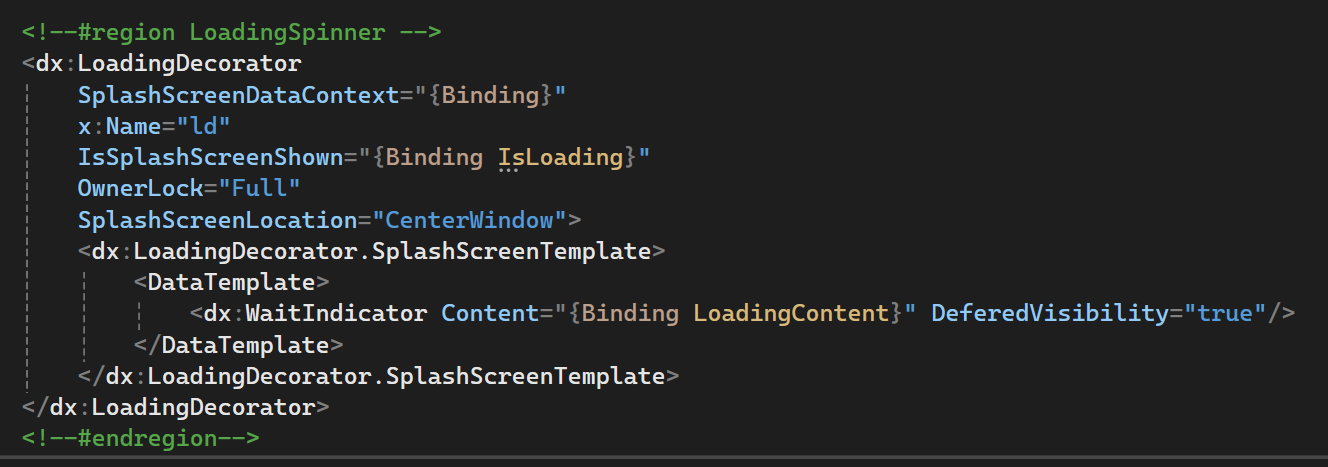 The goal is to display the information that the application is working. So I'm looking for an intelligent implementation sample of a loading spinner using WPF / MVVM.